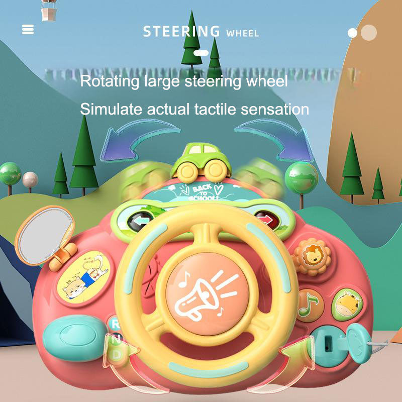 Children's simulation steering wheel cartoon simulation co pilot car rear seat car baby lighting music puzzle toy